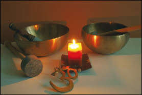 Der harmonische Klang der Klangschale spricht das Urvertrauen an und beruhigt. Die Klangschalen werden auf den bekleideten Körper gelegt und angeschlagen. So kommt der gesamte Körper in Schwingung.